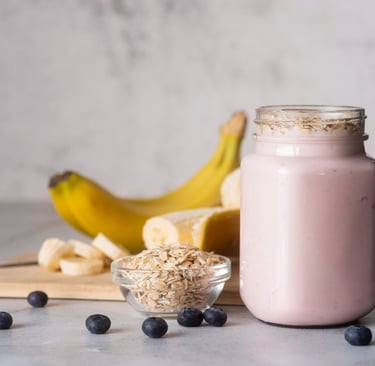 Savor the goodness of our Oat Berry Smoothie – a luscious blend of rolled oats, banana, berries, almond milk, and more.