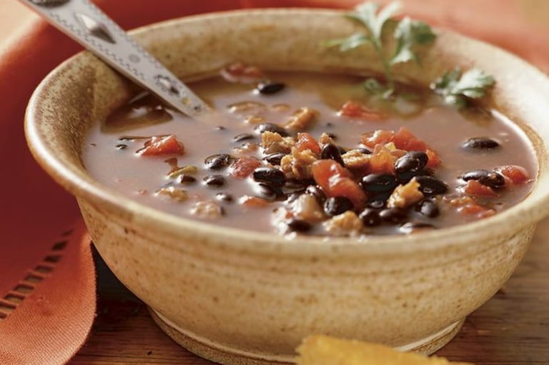 Spice up your mealtime with our Spicy Black Bean Vegetable Soup. A zesty and comforting treat for any occasion.