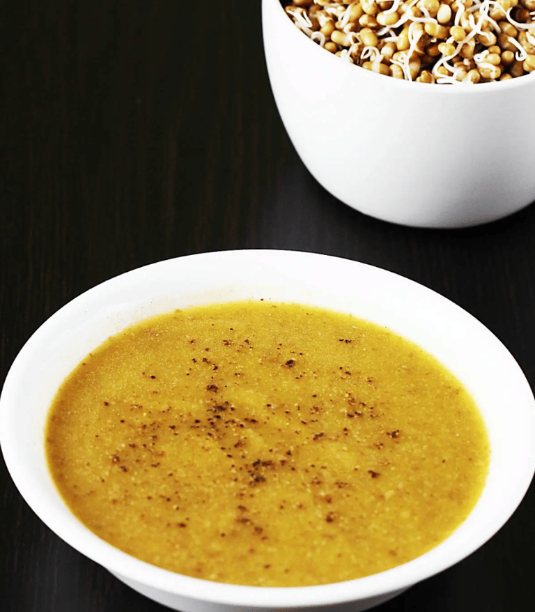 Delight your senses with our Sprouts-Veggie Ginger Soup, a nourishing blend of moong sprouts and colorful vegetables. The warmth of grated ginger adds a subtle kick, making this soup a comforting and wholesome choice. Whether pressure-cooked or simmered to perfection, this easy-to-make soup is a hearty, flavorful bowl of goodness. Enjoy the fusion of textures and flavors, served hot for a delightful and nutritious experience.